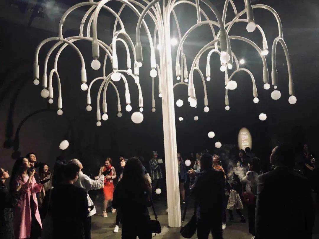 烟泡树,寓意春天的乐观主义和季节带来重生之感,由一系列白色的管道聚集而成,形成一棵树的形状。在每个“树枝”的末端,能够“长出”充满烟雾的半透明气泡,缓慢地落向地面,在与人们接触的瞬间获得美妙的回忆。