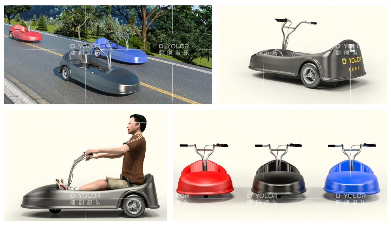 基于市场上景区、农庄、特色小镇等客户的经营需求,鼎创游乐广泛搜集市场上最新的游玩趋势及设备,经过近两年的不断打磨,从滑车的属性、外形、性能、功能体验、安全等方面,研发出了山道滑车单品外观设计。