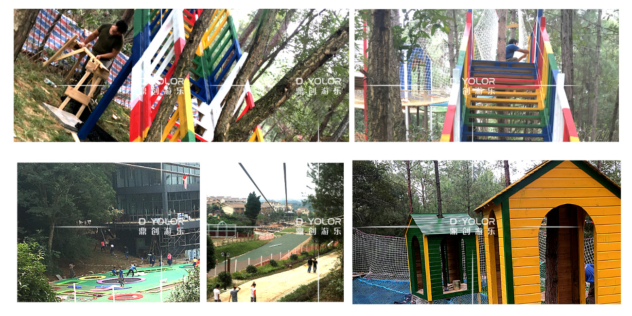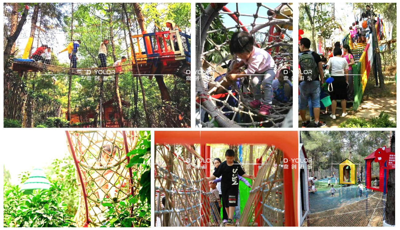 鼎创游乐从前期公园形象定位、生态环境及其他游玩设备融合多维度考量,设计规划出该园区特色鲜明、时尚趣味的丛林穿越、滑索两大游乐项目,现已成为公园内必玩的网红打卡游乐项目。