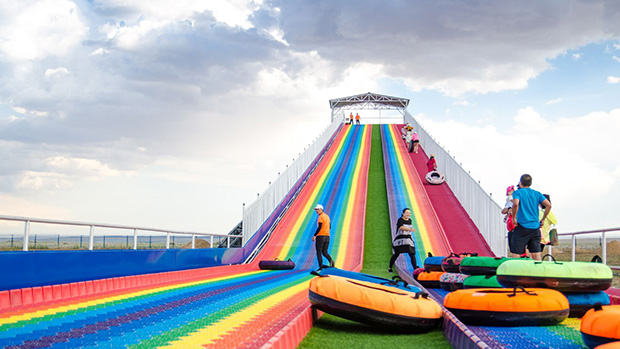 彩虹滑道:彩虹滑道因为绚丽的外形和新颖的玩法吸引到了众多的游客。顾名思义,彩虹滑道是由七种色彩组成,宛如彩虹一般。而在体验彩虹滑道时,游客从长长的滑道中滑下,仿佛从彩虹中穿过,既唯美又刺激。