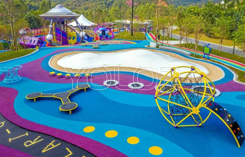 儿童游乐场所首先要保证场地的安全,从场地到各种游乐设施及景观,都要保证安稳牢靠。还需要远离繁忙的道路,远离危险的水源。