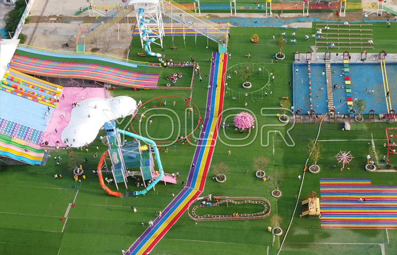儿童一般都对颜色鲜艳的物体比较感兴趣,而鲜艳的色彩有很多,过多的颜色反而会适得其反,显得杂乱无章。所以我们要制定主题色彩,以一个颜色为主,这样不仅显得户外亲子无动力乐园整体细节比较到位无动力乐园规划,给人眼前一亮。
